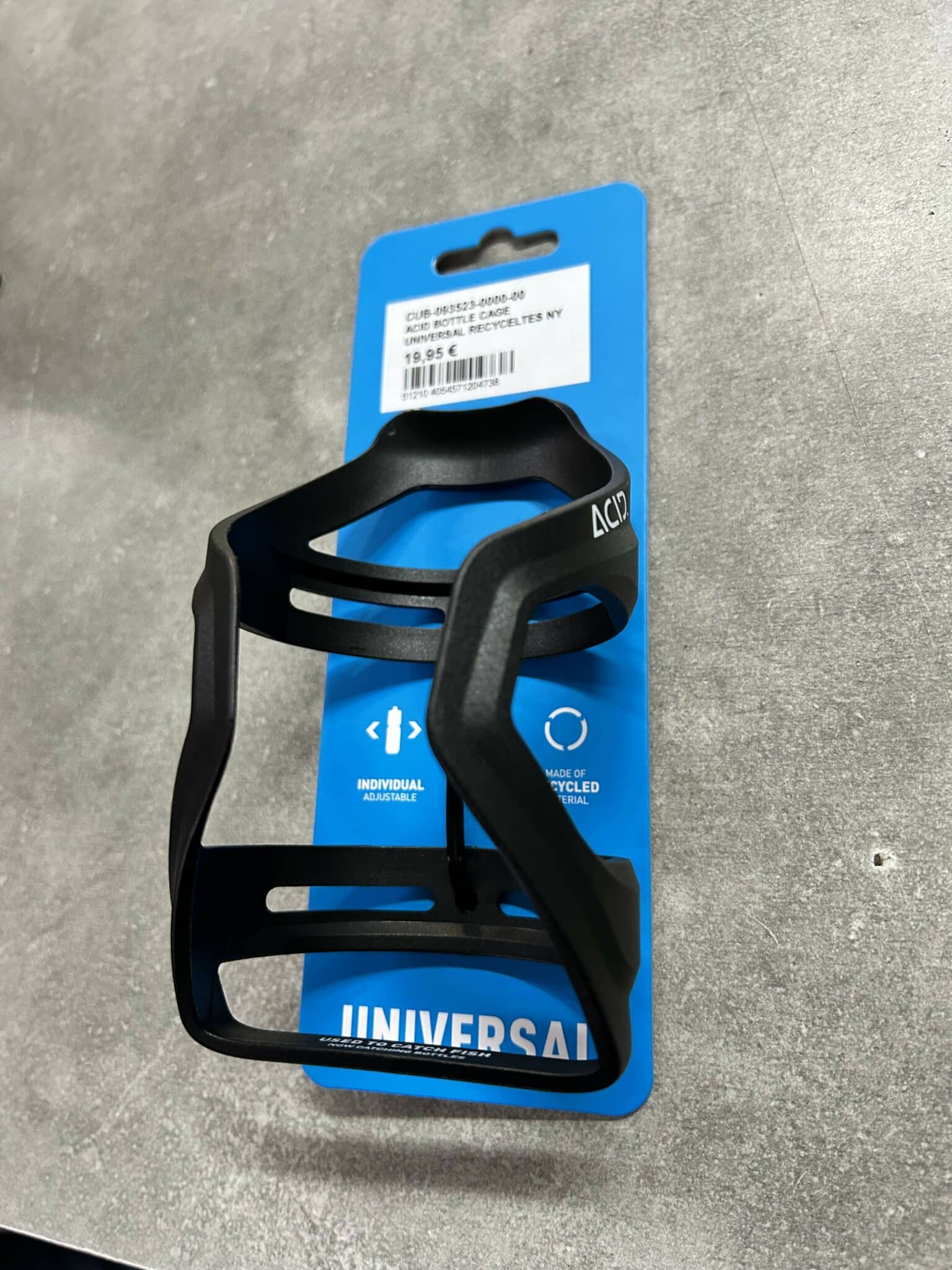 Le porte-bouteilles UNIVERSEL d’ACID est fabriqué à partir de filet de pêche recyclé. Grâce à son rail réglable, il peut être orienté jusqu’à un angle de 130° facilitant le retrait de la bouteille.